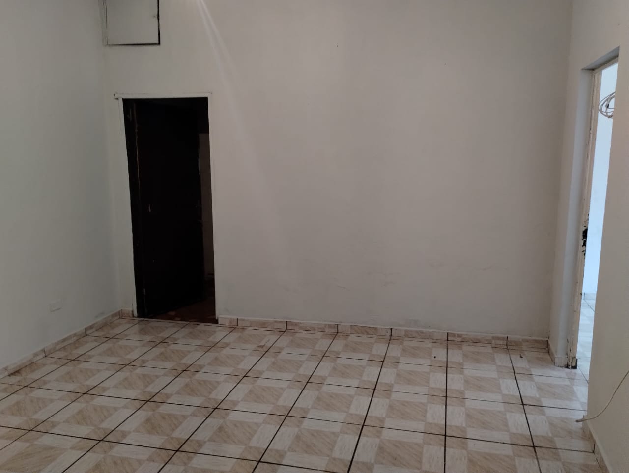 Frente - Sala, cozinha, quarto com banheiro, lavanderia.